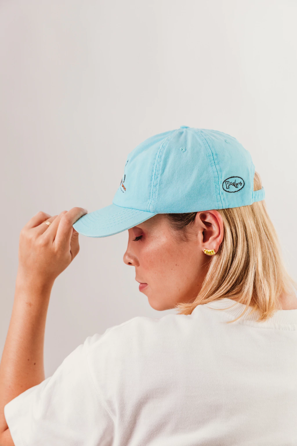 Boné modelo Dad Hat Premium 100% algodão com bordado Searching for the River (Em busca do Rio), disponível na cor Azul Claro.